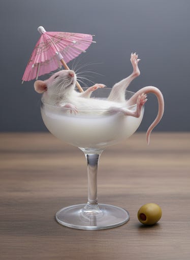 I ran a test, where I fed it an old piece of my artwork - “Rat-Arsed”. I asked it to give me a realistic version. Here is the result and the original… And yes, I do know there is an issue with one of the legs going through the glass! I reckon I could fix that. 🤣